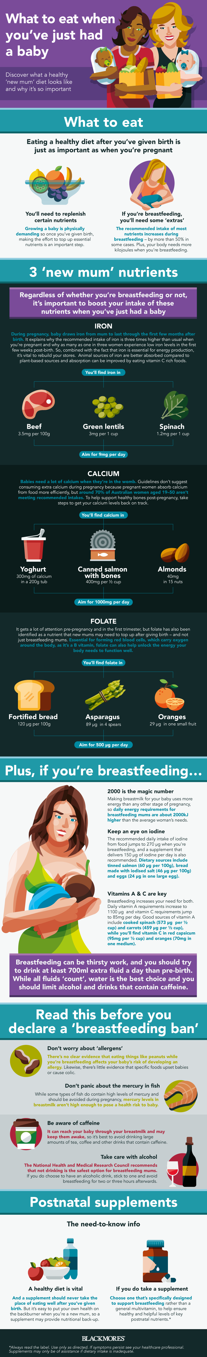 - You’ll need to replenish certain nutrients. Growing a baby is physically demanding so once you’ve given birth, making the effort to top up essential nutrients is an important step